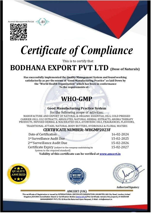 At Bodhana Export, we deliver the purest essential oils and natural wellness solutions, crafted with passion and precision. Our commitment to quality, sustainability, and ethical practices ensures the highest standards.